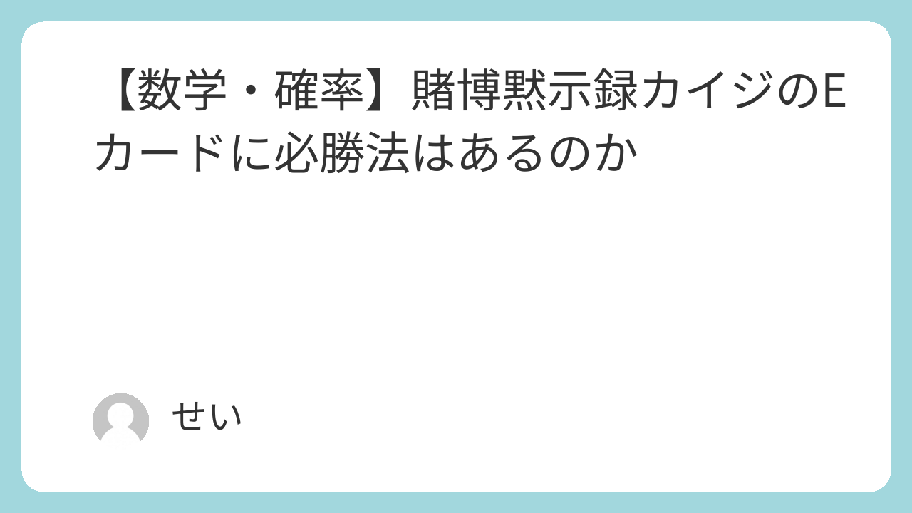 福本伸行先生の名作『賭博黙示録カイジ』に登場する「Eカード」。今回は、このEカードについて「必勝法はあるのか?」というテーマで、ルールから勝率、戦略、そして公平なギャンブルにするにはどうすべきかを解説します。